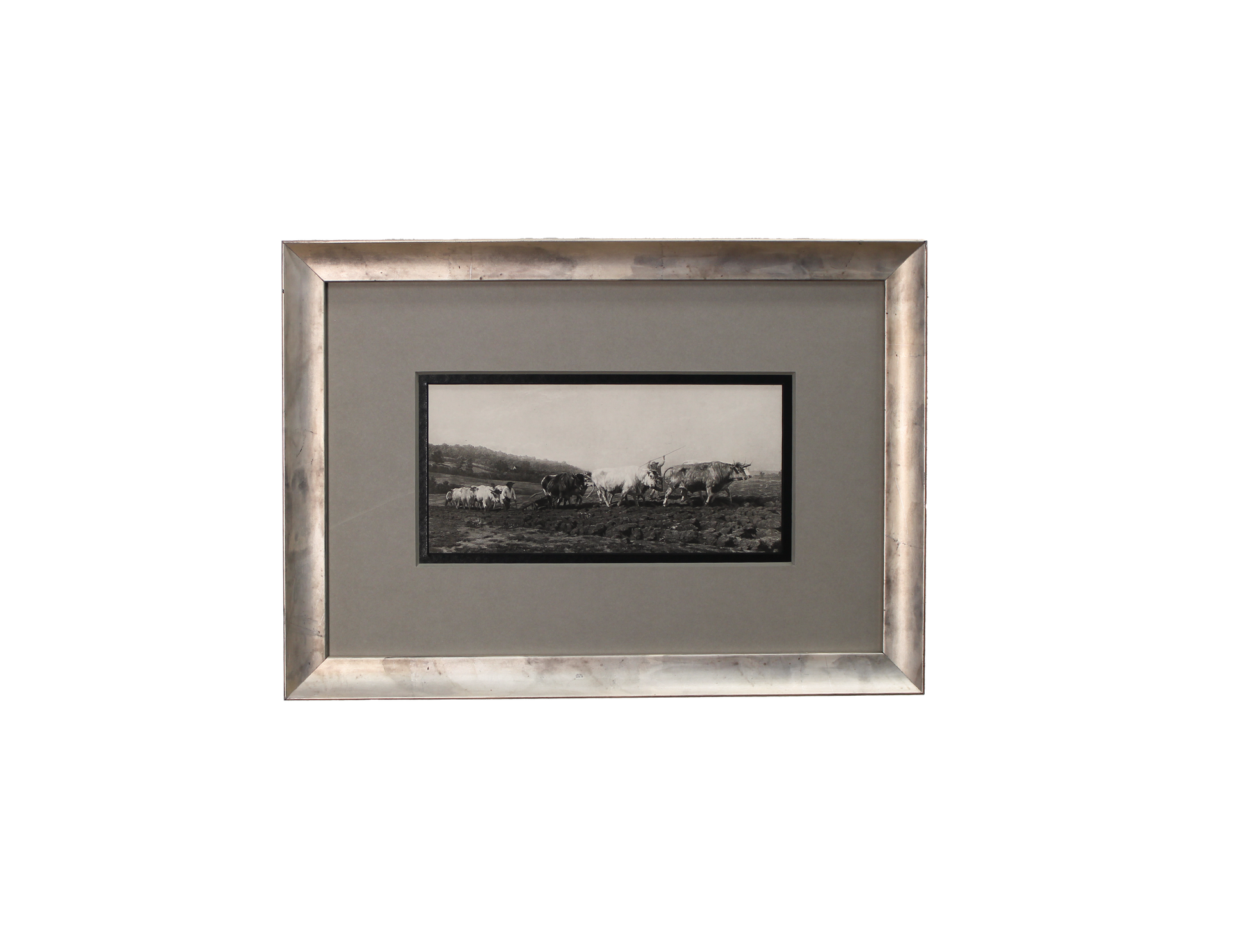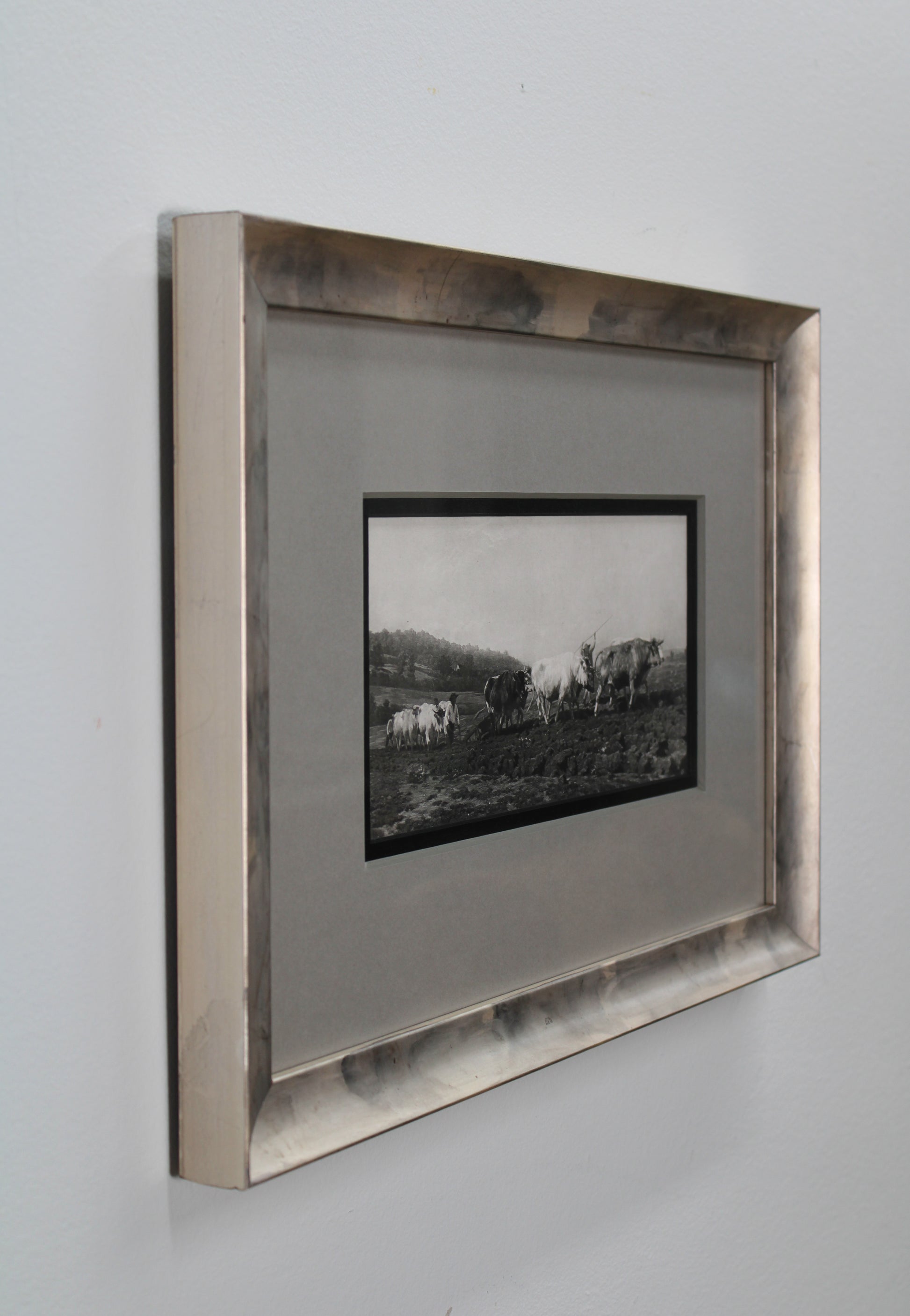 Description: Scoop, champagne frame, 8ply grey and black double mat