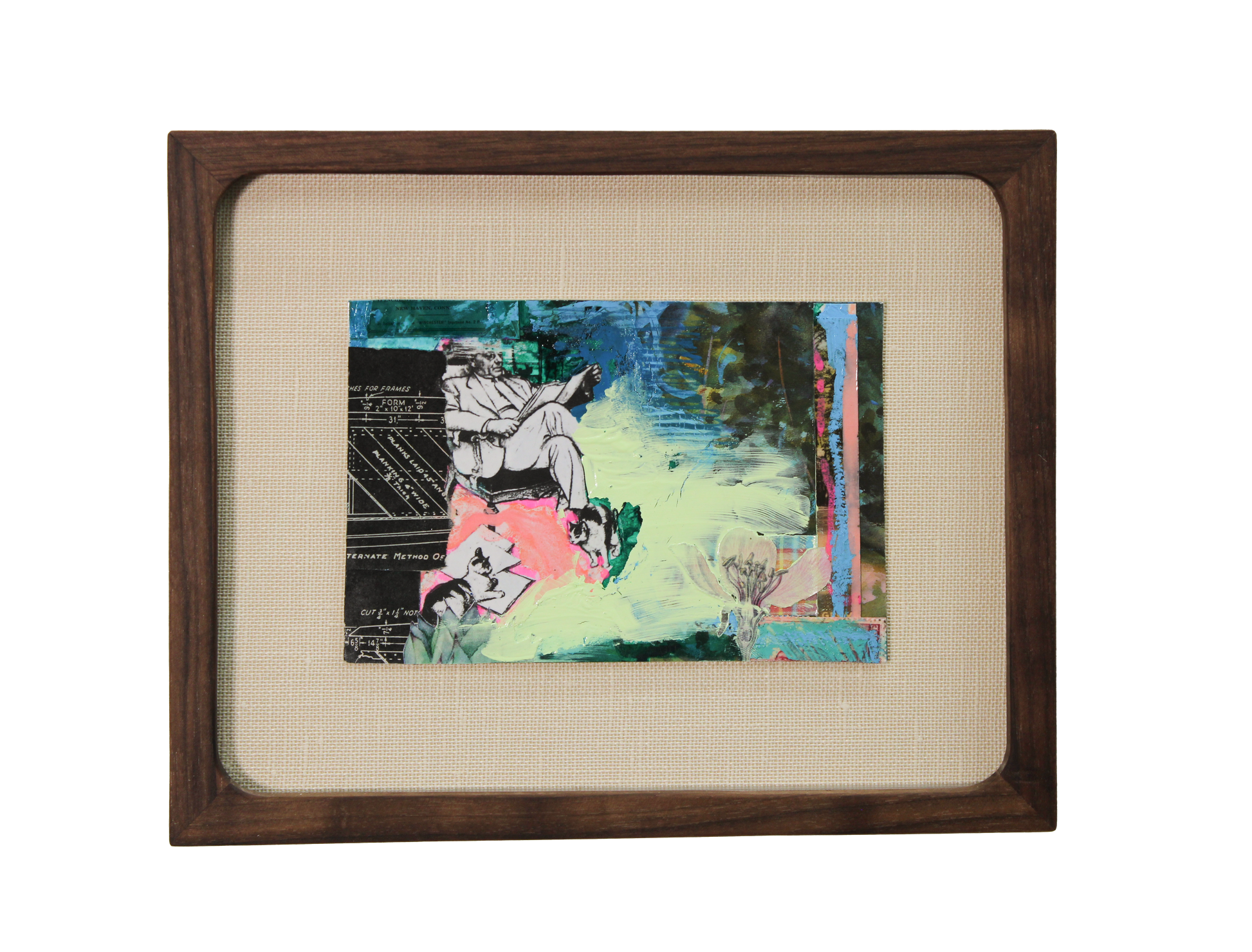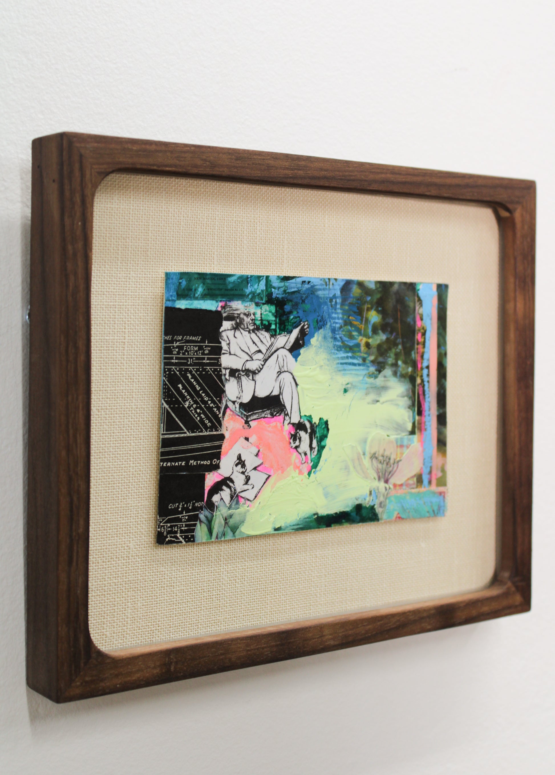Description: Olive & Melon Walnut Frame, floated on a cream linen mat