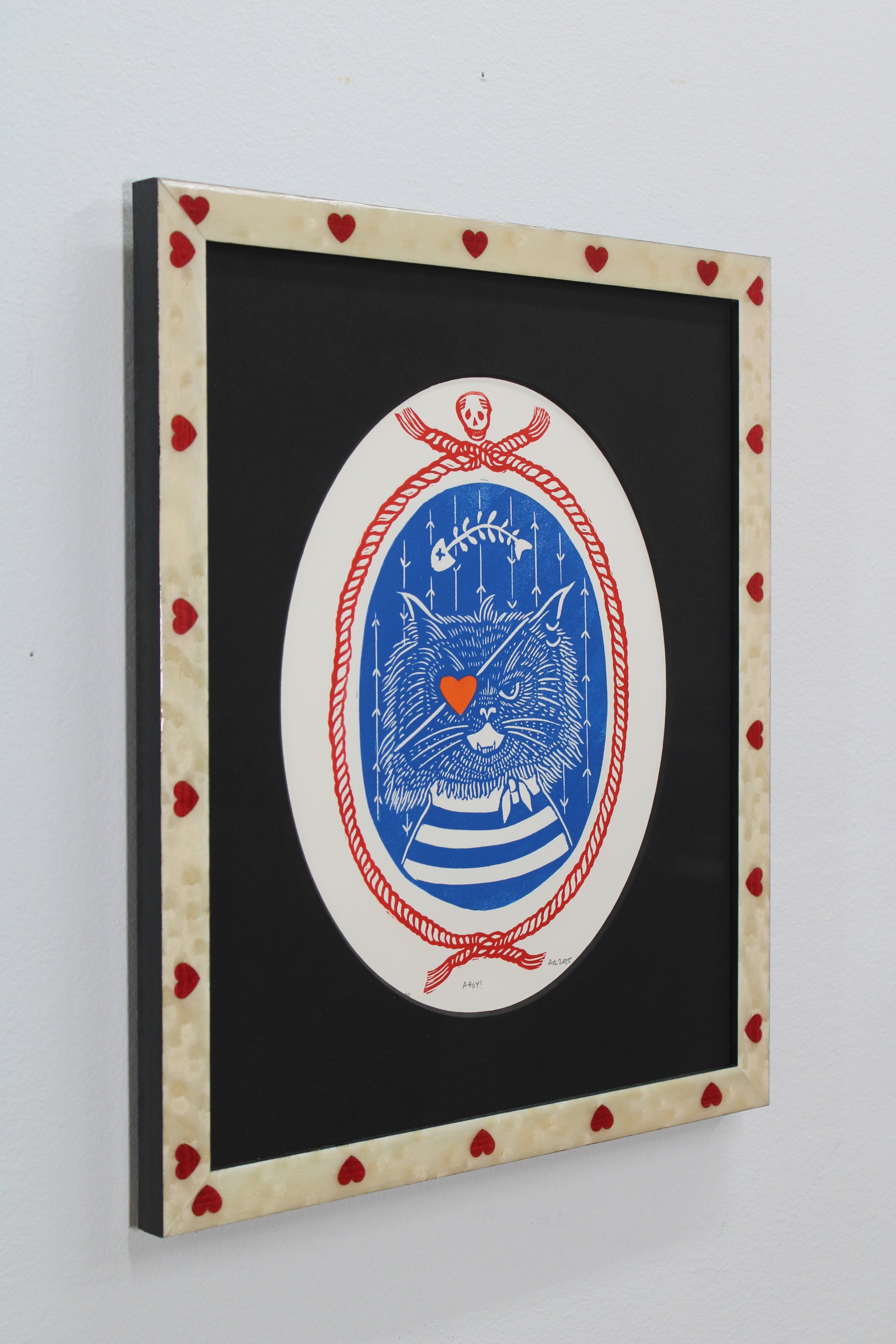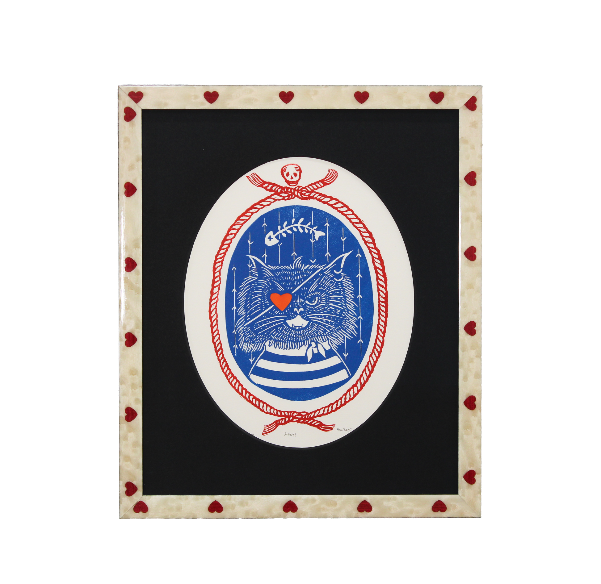 Description: Off white and red heart inlay frame, black oval cut mat