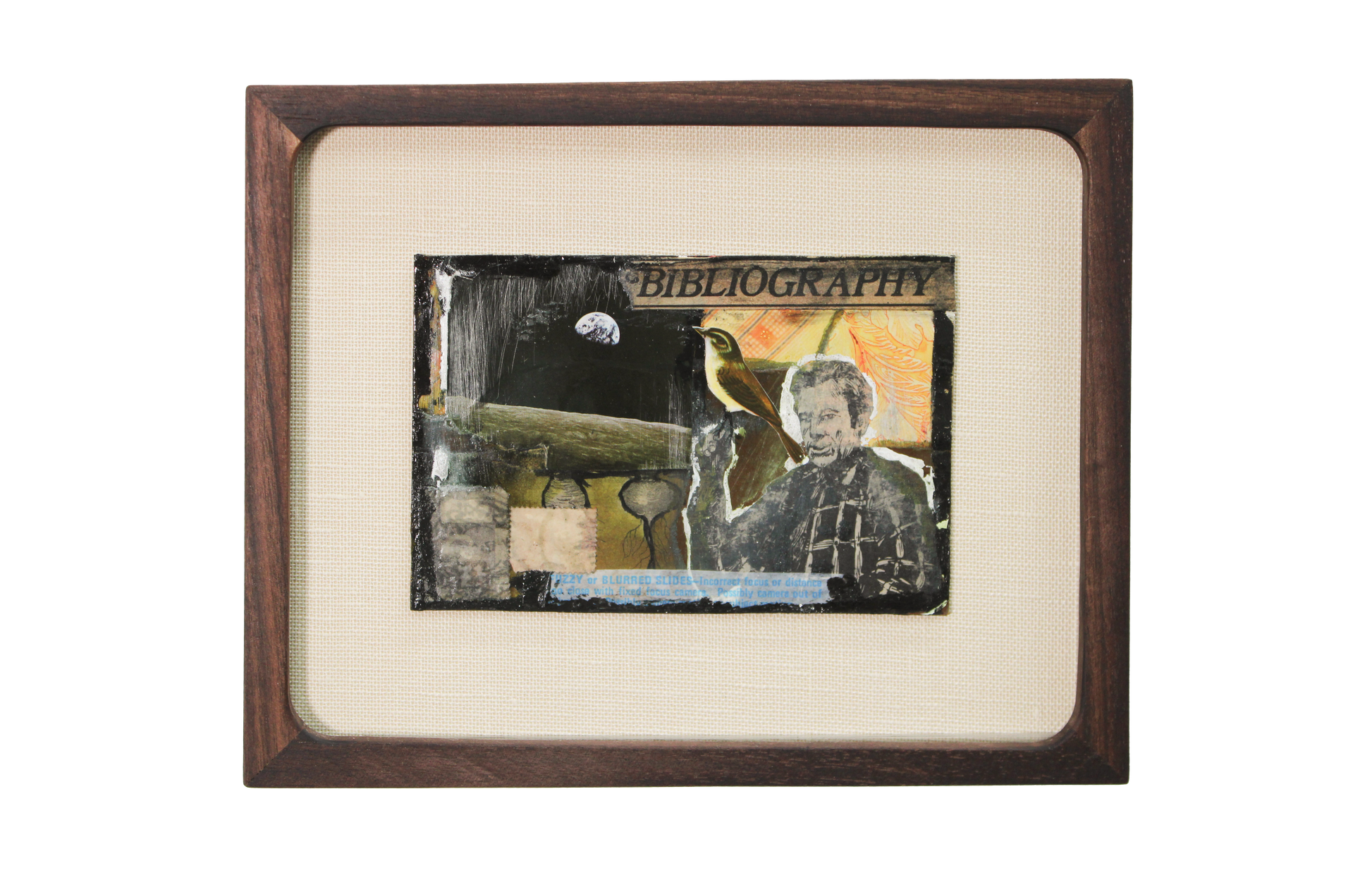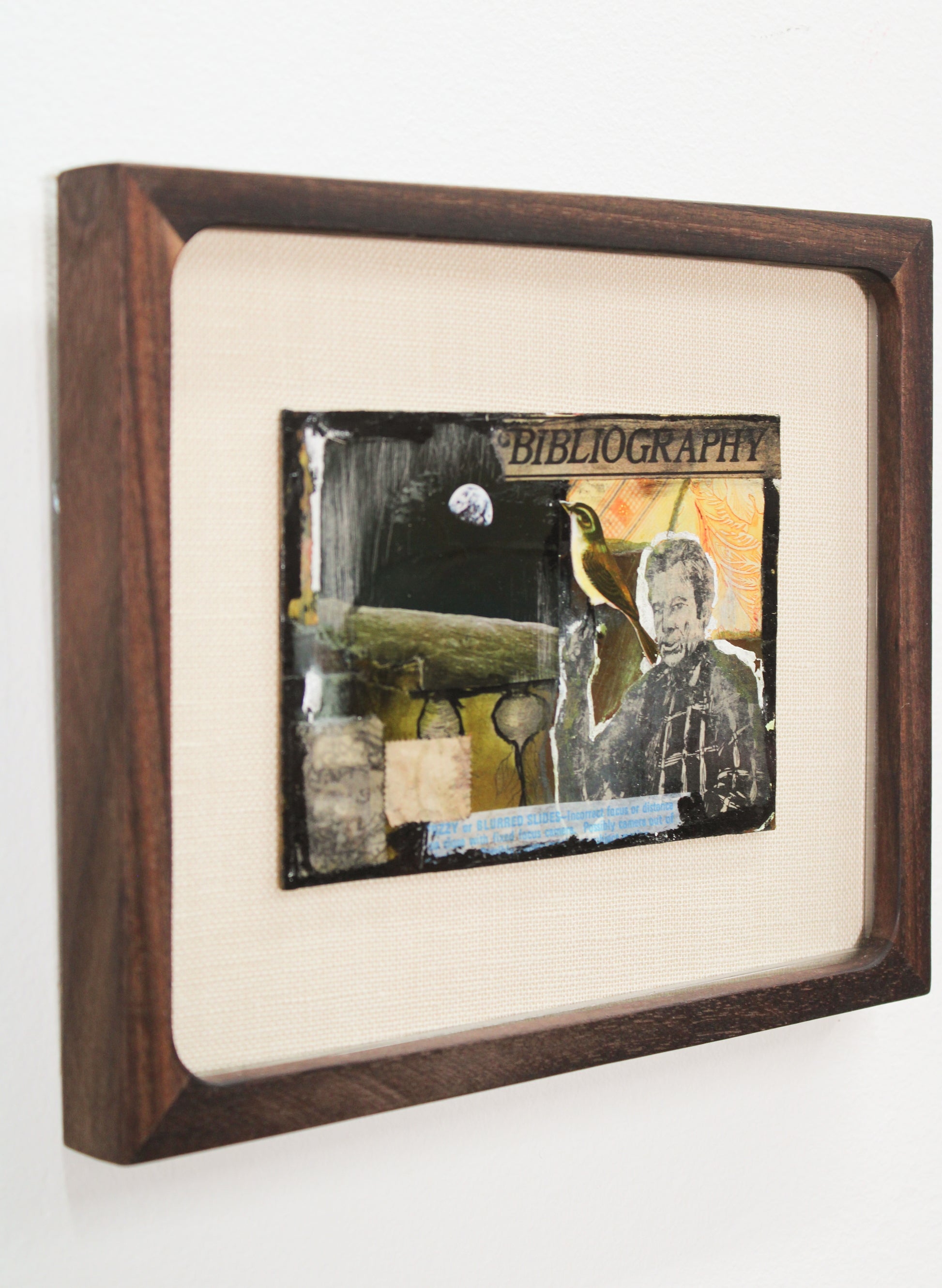 Description: Olive & Melon Walnut Frame, floated on a cream linen mat