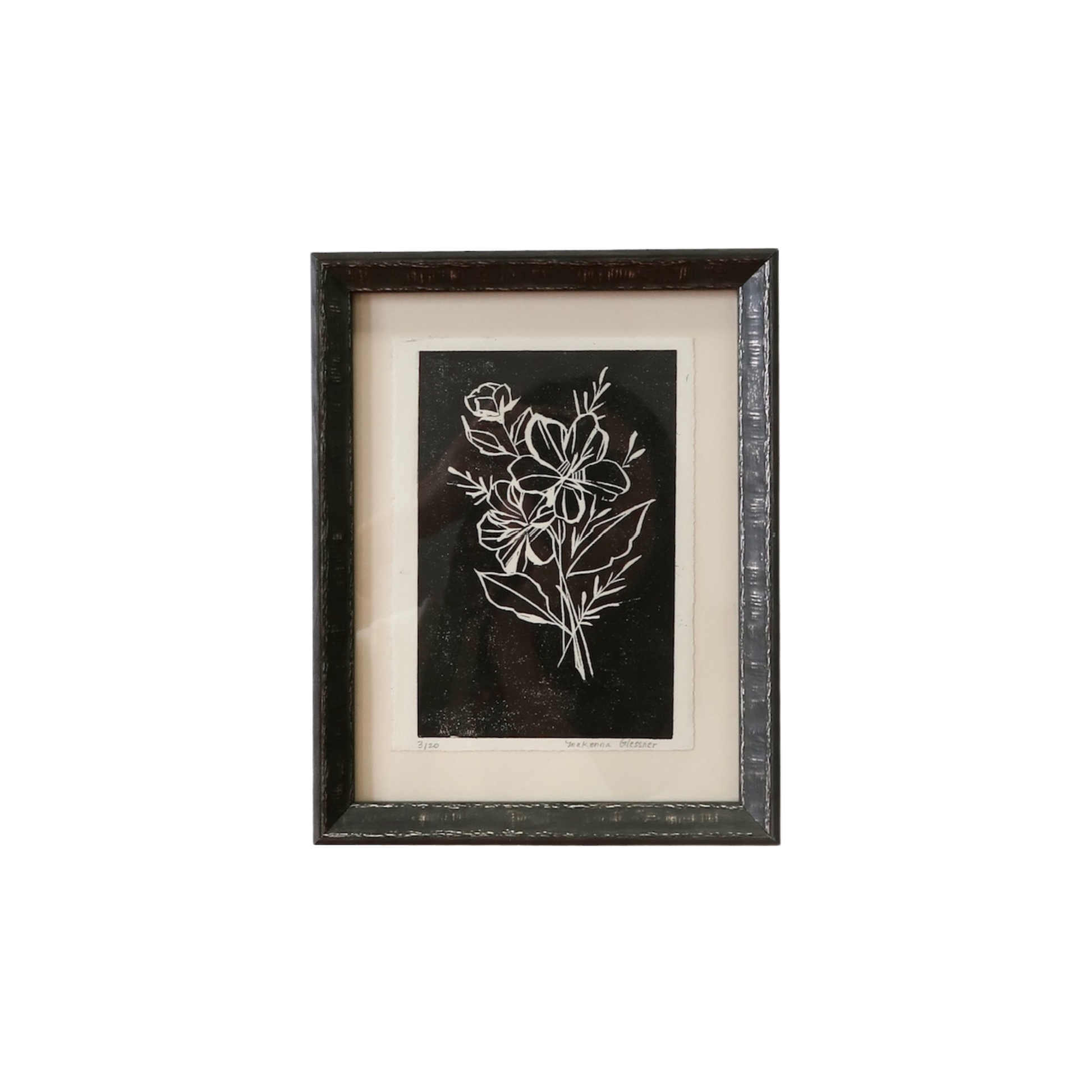 Floated with petite deckled edge on ivory frame in think grey/silver textured frame
