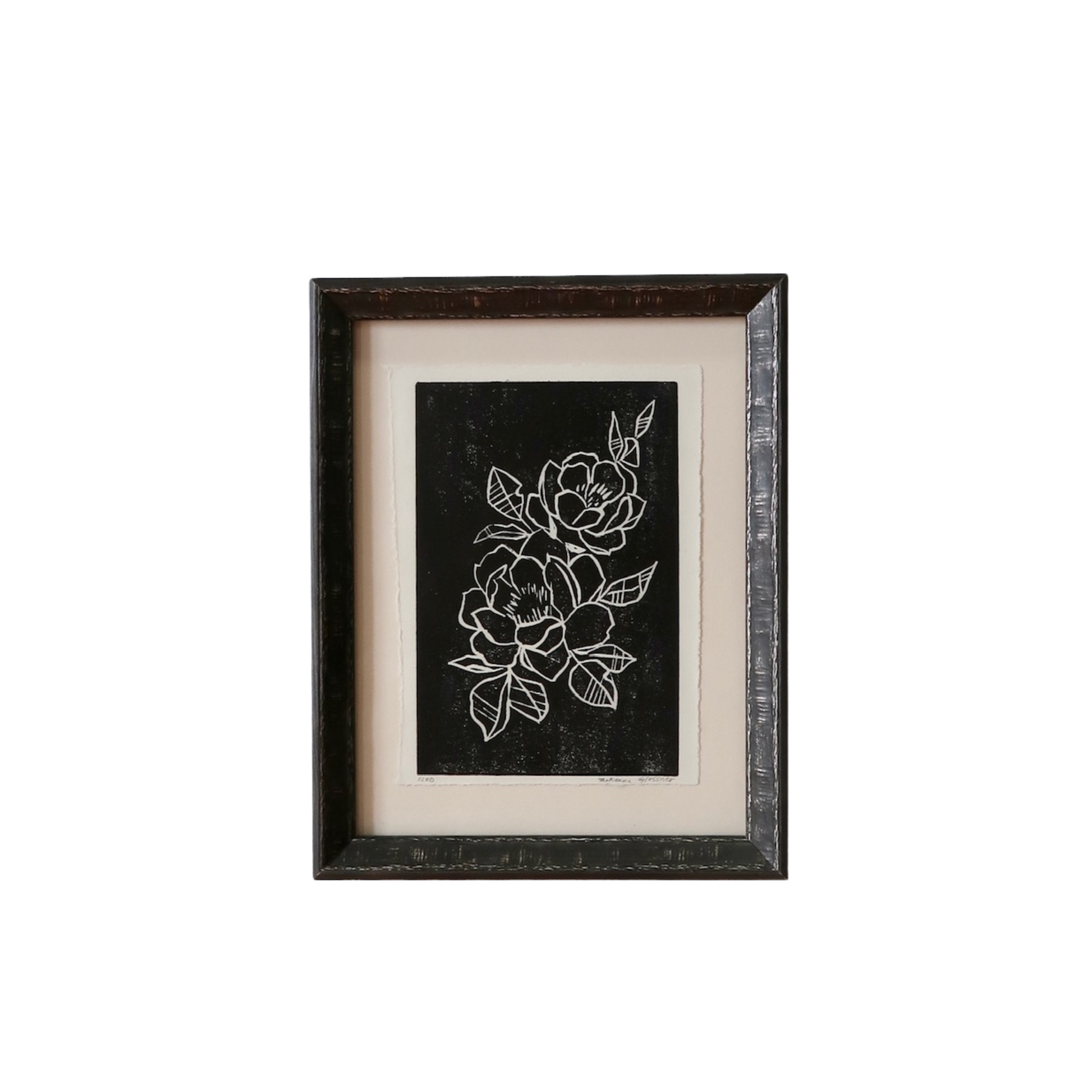 Floated with petite deckled edge on ivory frame in grey/silver textured frame