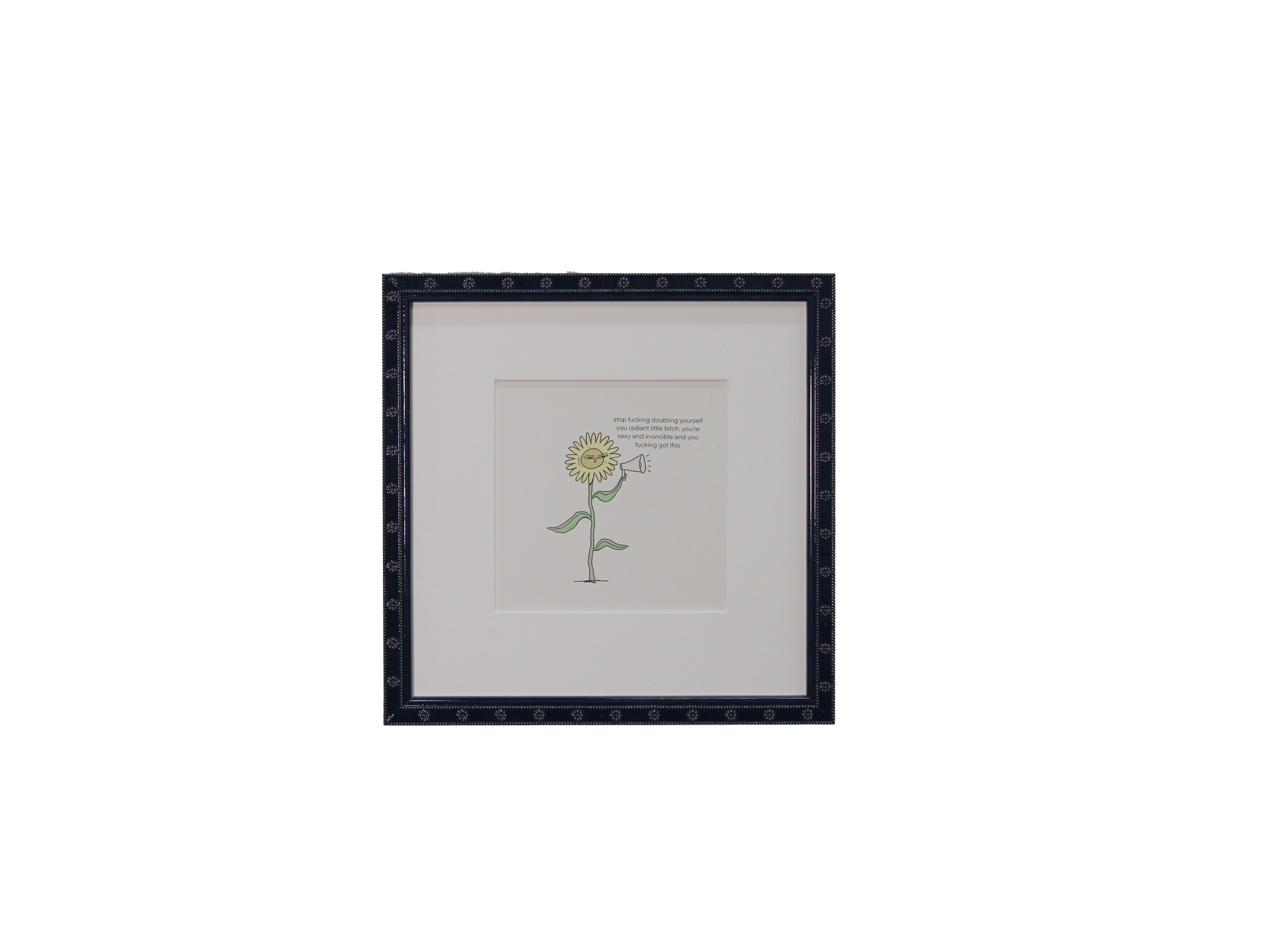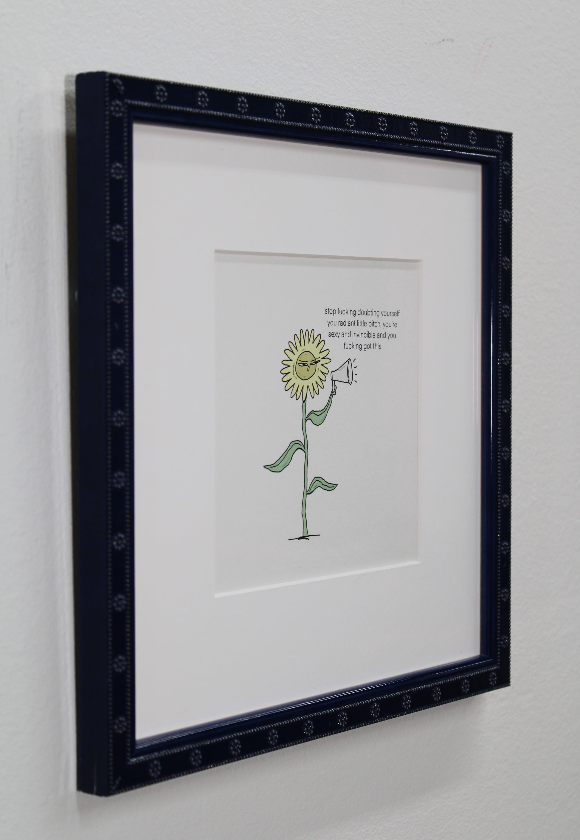 Description: Glossy blue flower frame, white mat